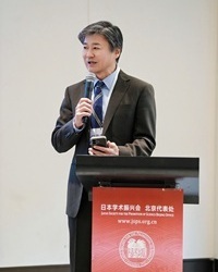 开幕式由湖南分会的蒋崇文分会会长(中南大学化学化工学院教授)主持,刘山虎会长(河南大学化学与分子科学学院教授)及JSPS北京代表处的山口英幸所长分别致开幕词。刘山虎会长向与会人员汇报了2024-2025年度同学会的活动成果。