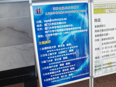 2009年12月19日(土)に福建省アモイ大学において、神戸大学とアモイ大学との共同ワークショップが行われ、北京研究連絡センターから鶴尾副センター長が出席しました。