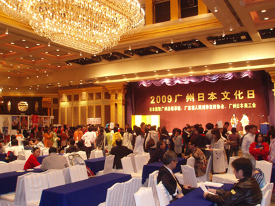 2009年11月14日(土)に広東省広州市内のホテルにおいて2009広州JAPANデーが開催されました。日本を紹介する多くのイベントが行われ、日本の文化·留学に関する情報提供も行われました。当日は大学生を中心に約2000人の来場者があり、会場は大いに賑わいました。