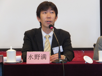 開会式では、主催機関の中国社会科学院農村発展研究所権兆能副所長から開会の挨拶が述べられた後、共催機関を代表して水野副センター長が挨拶を行いました。水野副センター長は挨拶の中で国際協働ネットワーク構築の意義について強調するとともに、JSPSフェローシッププログラムを紹介し、さらなる共同研究や研究者交流のために積極的にJSPS事業を活用してほしいと訴えました。その後、二日間に渡って行われた会議には50名を超える日中の大学院生·研究者等が参加して、最新の研究成果の発表やディスカッションが展開されました。