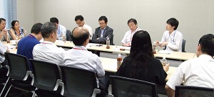 2013年8月9日(金)、在中国日本国大使館(北京市)において、日本に留学経験を持つ北京市内の大学教員10名(JSPS同窓会員6名を含む)と、日本国大使館、JSPS北京研究連絡センター及び科学技術振興機構(JST)北京事務所による意見交換会が開催されました。