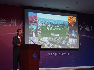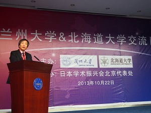 2013年10月22日(火)に蘭州大学で開催された「北海道大学·蘭州大学交流デー」(主催:北海道大学、蘭州大学、後援:JSPS北京研究連絡センター)に、JSPS北京研究連絡センターから和田修センター長他2名が出席しました。