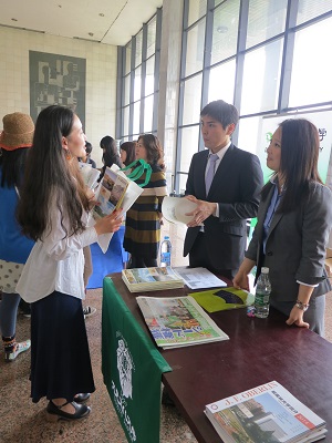 説明会会場となった対外経済貿易大学は経済を中心とした人文社会系の大学で、日本語学科も設置しており、日本への留学に関心を持つ学生は多く、説明会当日は全体説明の会場が満席となるほどの盛況ぶりでした。