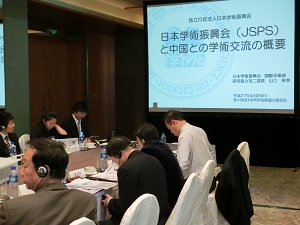 2015年4月28日(火)、北京のシャングリラホテルにおいて、第15回日中科学技術協力委員会が開催されました。前回の開催から3年ぶりに日中両国の科学技術関係機関が一堂に会し、中国側からは、中国科学技術部、外交部、教育部、工業情報化部、水利部、農業部、国家林業局、中国地震局、中国気象局、中国科学院及び国家自然科学基金委員会等の関係者(25名)、日本側からは、外務省、文部科学省、農林水産省、在中国日本大使館、科学技術振興機構、理化学研究所及び日本学術振興会等の関係者(28名)が参加しました。本会からは山口英幸国際事業部研究協力第二課長及び廣田薫北京研究連絡センター長等が出席しました。