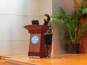 全体説明会では、はじめに吉林大学国際合作与交流処の李梅花常務副処長から挨拶があり、その後、在中国日本国大使館の名子学一等書記官から日本留学の魅力、手続き及び奨学金制度などについて概要説明が行われました。続いて行われた、会場参加した14大学·機関の担当者による個別プレゼンテーションでは、各大学・機関が趣向を凝らしたプレゼンを行い、来場した学生の注目を集めていました。