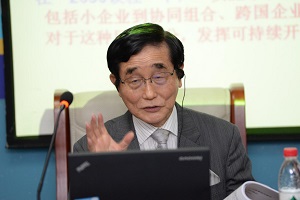 第2セッションの「農業協同組合と農村の発展」では、日本側2名、中国側1名の専門家による講演が行われ、中国側からは任大鵬 中国農業大学教授が中国における農民合作社の立法と法改正について概要と今後解決されるべき問題点を指摘されました。日本側からは神田健策 弘前大学名誉教授が、日本の農村社会の変化と総合農協の自主改革について現状の説明と今後の展望を述べられました。また、多木誠一郎 小樽商科大学教授は2015年の農業組合法改正の概要と残された課題について説明し、今後の解決策について検討されました。