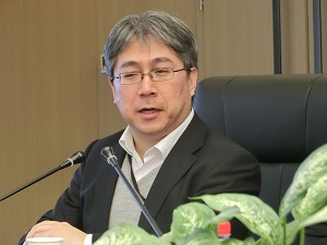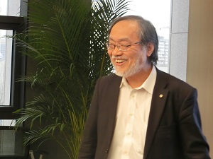 会合では初めに大野木昇司 日中環境協力支援センター有限会社取締役社長にご講演をしていただき、その後、福田教授に新棟6号館にできたロボットセンターのご紹介をしていただきました。大野木社長からは中国の環境政策と環境改善の状況について、福田教授からはご自身のロボット研究と北京理工大学ロボットセンターについてお話いただきました。
