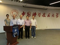 中国科学技術大学での説明会 胡教授による体験談 周副主任、趙教授、胡教授と