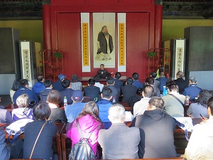 同日午後は、孔子研究院の楊朝明院長をお招きしてのご講演と三孔(孔府・孔廟・孔林)内の解説が行われました。山東省曲阜市は、孔子の生地であるため孔子の研究が盛んであること、また、同窓生のご推薦・ご協力も加わって、今年度の総会を曲阜市で開催する運びとなりました。楊院長の講演はなかなか聞くことが出来ない貴重なものであり、中国人に縁の深い孔子に関する講演は、参加者の専門がどの分野かを問わず、皆が聞き入ることが出来ました。また、講演後には積極的に質問が投げかけられ、大変良い交流のひと時となりました。