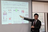 会合では、西村一仁 工学院大学工学部機械工学科教授/中国科学院外国人専門家特聘研究員と大川龍郎 新エネルギー·産業技術総合開発機構(NEDO)北京事務所長にご講演いただきました。西村教授は、「ダイヤモンドの歴史」について、合成ダイヤモンド研究の現状や中国のダイヤモンドジュエリーマーケットの解説を織り交ぜながら分かりやすくご説明くださいました。続いて、大川所長は、「中国ベンチャービジネスの動向」について、中国のモビリティサービス業界の動向やベンチャー投資状況、ベンチャービジネスの未来について、実例を示しながらお話しくださいました。