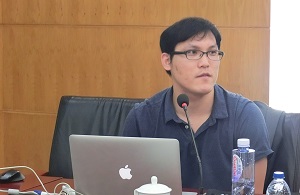 会合では、はじめに清華大学 豊田洋輔先生、次に北京航空航天大学 土井正男教授にご講演いただきました。豊田先生からは、清華大学Kobilka研究室でのポスドク研究について、これまでの京都大学での研究や、同じく現在フィンランドで研究をされている双子のお兄様のお話も交えてご紹介いただきました。また、土井先生からは、「千人計画」プログラム開始当初の研究室立ち上げのお話や、当時の研究内容について、実演を交えて分かり易くご説明いただきました。