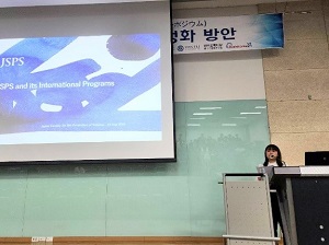 その後、2名の韓国同窓会員と2名の日本人研究者による講演では、各講演者が行っている海外機関との共同研究・学術交流の紹介や海外での研究経験の大切さ等が述べられ、参加した若手研究者・学生は熱心に耳を傾けていました。なお、今回、日本人研究者として登壇した横溝教授、前仲教授は、JSPS事業「特別研究員」の経験者です。
