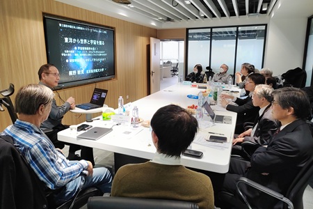 さろんでは、谷畑勇夫教授から「中国の研究グループと働くこと」について、続いて梶野敏貴教授から、「東洋から世界と宇宙を観る」をテーマに自身の経歴や研究経験等をお話いただいた後に、参加者からの自己紹介、近況報告が行われました。特に中国に赴任されてからの苦労話や学生指導の話は参加者間で共感を得るところも多く、その後のフリーディスカッションでは盛んに意見交換が行われました。終了後、参加者から「異分野間の日本人研究者同士で意見交換ができて有意義であった」等の回答が多く寄せられました。